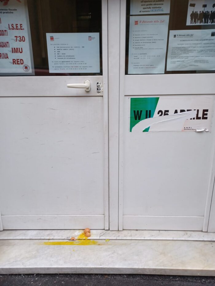 Durante la notte tra il 24 e il 25 ottobre si è verificato anche qui a San Pier d’Arena un episodio che pare assumere contorni molto simili a quanto è già accaduto a Roma con l’attacco alla sede del maggiore sindacato italiano, la CGIL, sicuramente ad opera di neofascisti che i filmati hanno chiaramente identificato come tali, peraltro con numerosi precedenti. La sede SPI-CGIL di Via A. Stennio è stata danneggiata con colla sparsa su serrature e maniglie, nonché lancio di uova e lacerazione del manifestino che inneggia al 25 Aprile 1945. Abbiamo parlato con i responsabili esprimendo la solidarietà del nostro giornale e condannando il fatto, constatando che la loro attività sociale continua regolarmente senza alcun cedimento a questo tipo di intimidazioni. La dinamica del danneggiamento e le sue modalità fanno chiaramente pensare ad una azione squadristica, ci hanno detto i responsabili che abbiamo incontrato, inserita nel clima esistente nel paese da molto tempo e tristemente confermato dai recenti fatti di Roma nonché dallo show perpetrato durante una partita di calcio all’Olimpico durante la quale un personaggio notissimo ha palesemente salutato “romanamente” con il braccio teso mentre diversi giovani tifosi laziali inneggiavano al duce del fascismo. La possibilità che questo fatto nostrano rientri tra i “normali” vandalismi di qualche squilibrato appare assai remota, mentre la tesi del filone squadristico trova conferme proprio nelle modalità tipiche di chi non sa esprimere il proprio pensiero se non attraverso atti violenti. E’ dunque importante che si vigili costantemente per evitare che queste cose si ripetano, tenendo anche conto del fatto che i facinorosi trovano sempre più spesso “sponda” in pareri negazionisti di quanto è successo con fascismo e nazismo. E’ il tentativo di cancellare o mitigare quanto la Resistenza ha fatto per la nostra libertà ed è scritto nella Costituzione, della cui saggezza possono usufruire anche quelli che si riconoscono tuttora nelle idee che portarono l’Italia al disastro.